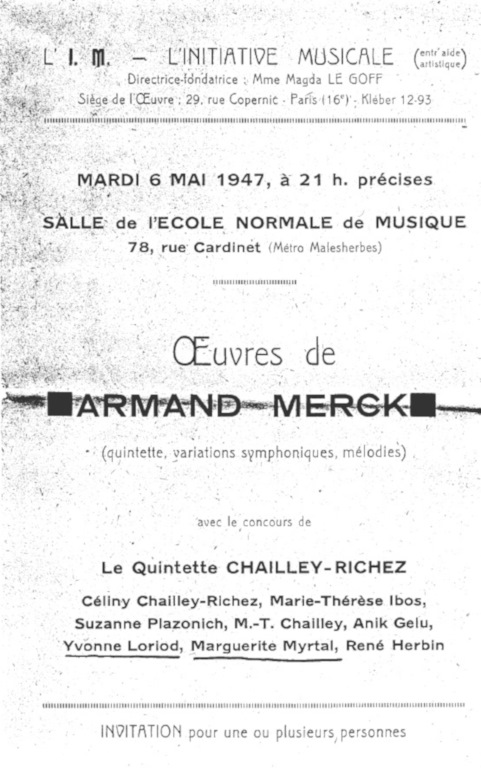 Concert du 6 mai 1947 à l'Ecole Normale de Musique de Paris