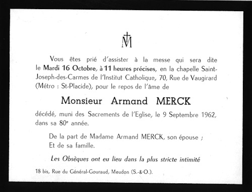 Invitation Messe du 16 octobre 1962 célébrée à la chapelle des Carmes